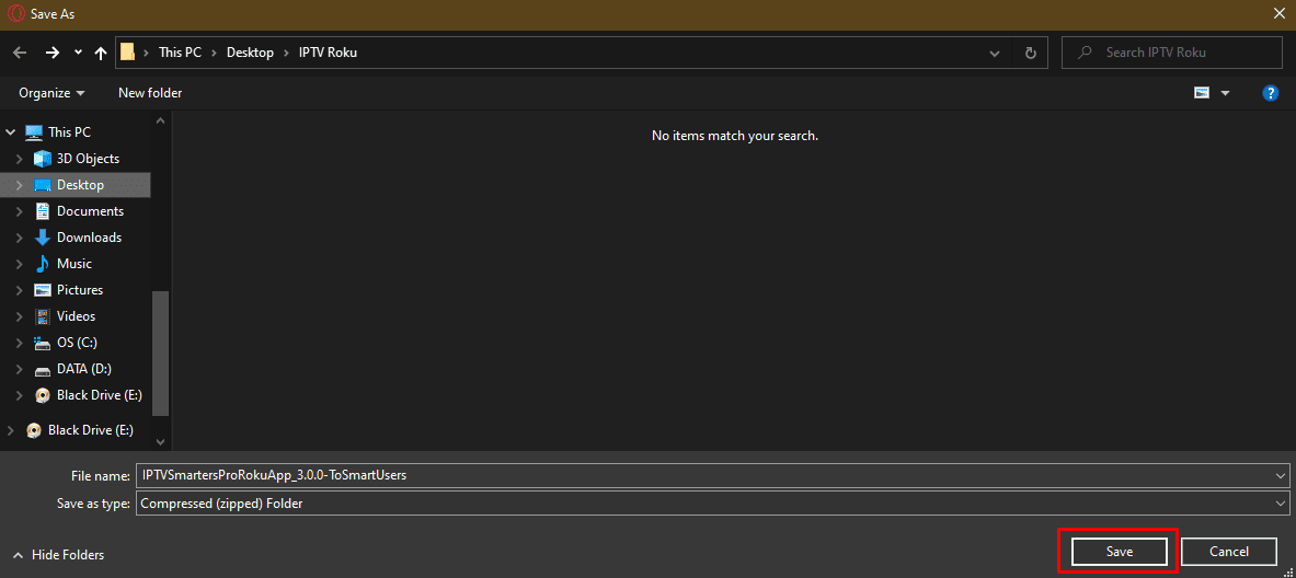 2. Save the IPTV Smarters package somewhere accessible on your computer (you’ll need to browse to this location in a moment). I’m going to save it on my Desktop.